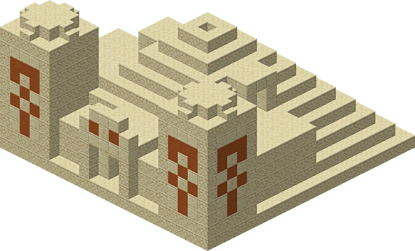 Desert pyramids spawn only on desert biomes and contain four treasure chests. All of the chests are well hidden and protected by bomb traps.
